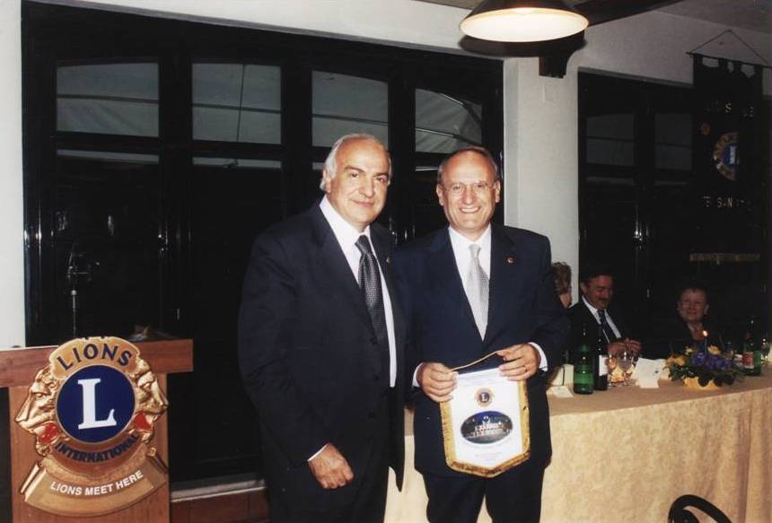 24.06.2004: Passaggio della Campana, alla presenza del Governatore Renato Palumbo, tra il Presidente uscente Aldo Placidi ed il Presidente entrante Vincenzo Cerioni; durante la serata sono stati consegnati dei distintivi di anzianità lionistica ed è entrato il nuovo Socio Massimo Asciutti.
