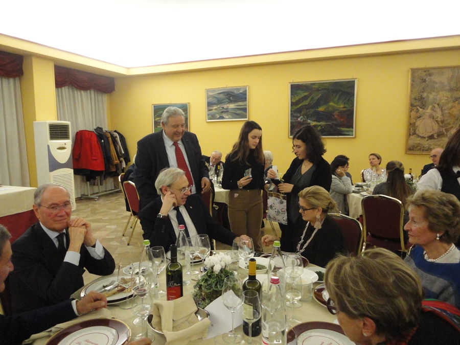 12 dicembre 2019 : ha avuto luogo la tradizionale Festa degli Auguri con la presenza n. 44 partecipanti di cui n.22 Soci (81,48%) con coniuge ed ospiti. La serata è stata rallegrata dalla tradizionale lotteria di beneficenza con premi offerti dai Soci sono stati raccolti € 575,00 che sono stati così utilizzati: € 100,00 donati a Venezia per acquisto divise calcio Venezia distrutte dall’alluvione; € 100,00 per pacchi dono detenuti Casa Circondariale di Terni;€ 200,00 acquisto pelati per la mensa dei poveri “San Valentino” € 275,00 per service da definire.Il Presidente ha consegnato Pin di appartenenza al Lions ai Soci: 35 anni - Giampiero Troiani 20 anni - Mauro De Angelis 20 anni - Giuseppe Fatati -15 anni - Pietro Pallini Abbiamo festeggiato la giovane socia GIULIA QUARTINI che il 10 dicembre 2019 si è brillantemente laureata in medicina e chirurgia con 110 e 110 oltre. Il Club ha donato un braccialetto ricordo a Giulia. Complimenti e congratulazioni a Giulia!! Ai Soci è stato donato un gadget ricordo della serata, il 1° premio della lotteria (un cesto gastronomico) è stato vinto dal Socio Benigno Riso.